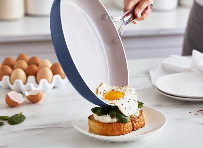 As the inventors of ceramic nonstick, we’re proud of the things we don’t put in our pans. Our Thermolon™ coating won’t release toxic fumes when overheated and creates 60% less CO2 than traditional nonstick during the curing phase. It lasts longer, performs better, and it makes every meal healthier. Healthy cooking starts with GreenPan.