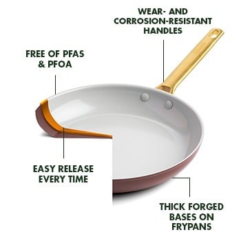 As the inventors of ceramic nonstick, we’re proud of the things we don’t put in our pans. Our Thermolon™ coating won’t release toxic fumes when overheated and creates 60% less CO2 than traditional nonstick during the curing phase. It lasts longer, performs better, and it makes every meal healthier. Healthy cooking starts with GreenPan.